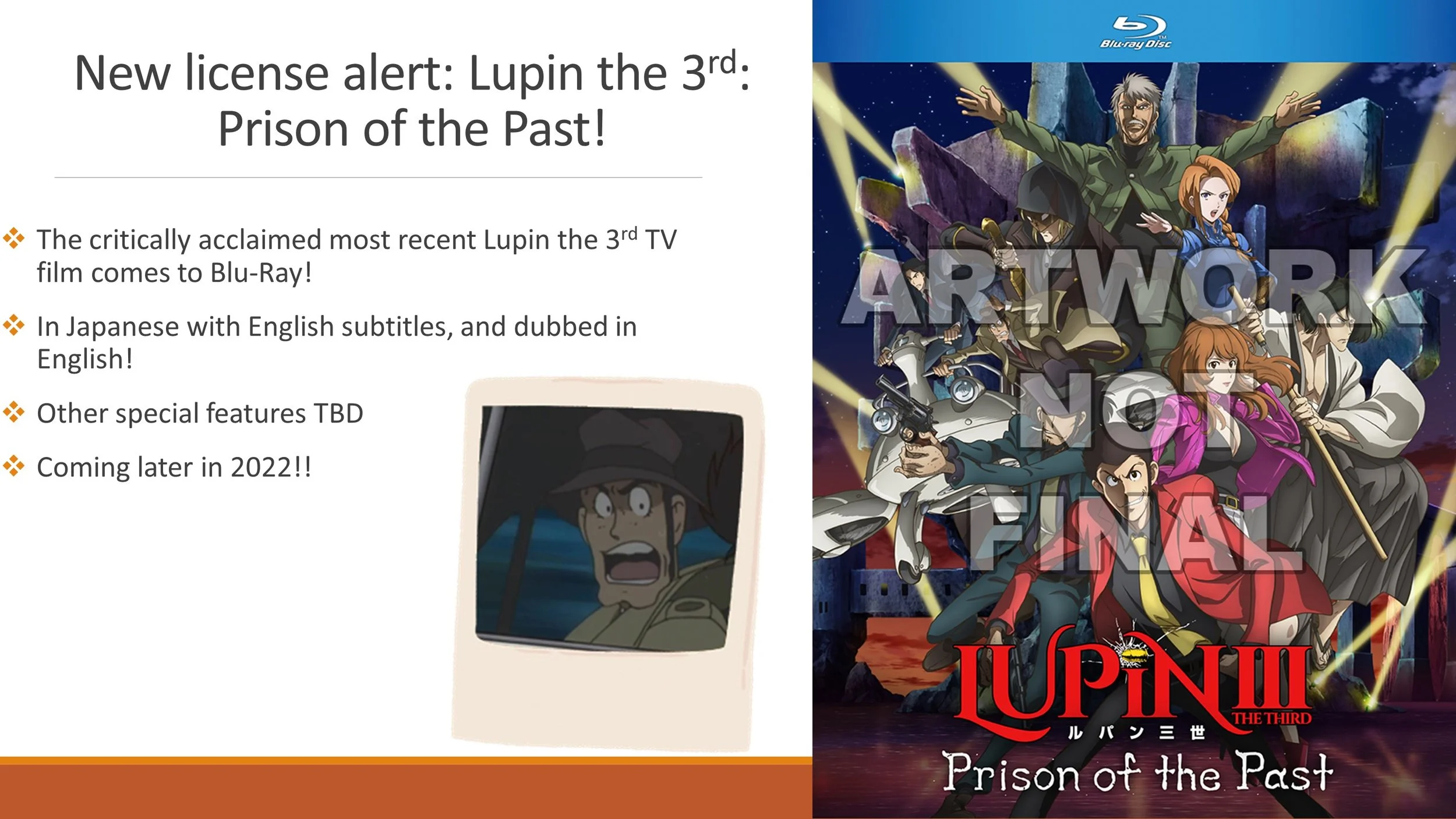 The 2019 television special Lupin III: Prison of the Past is due to receive an English language release on Blu-ray video format in 2022, courtesy of Discotek Media!