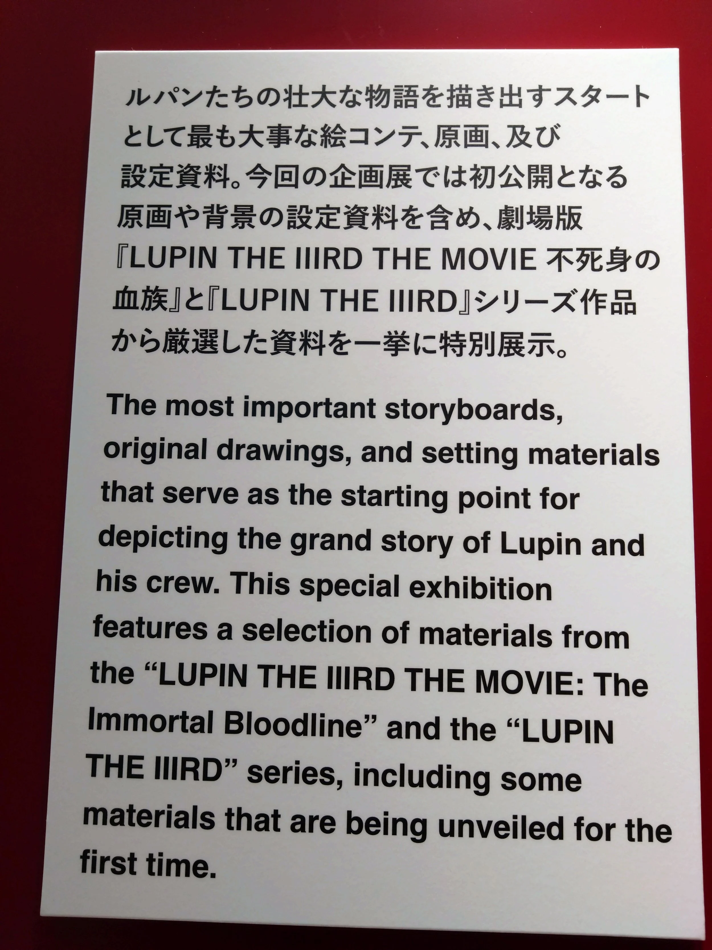 Sauté, an amazing and kind Lupin super-fan living in Japan, has provided us with an enormous number of photos and videos from the exhibit - too many to include as part of the original feature article. As such, we thought it best to create a separate post including everything sent to us by Sauté. Hopefully it should be easy and comfortable for you to flick through!